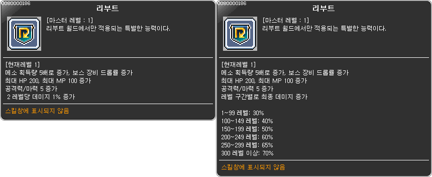 리부트 패시브 데미지가 최종뎀으로 바뀌고, 렙차뎀뻥이 추가되면서 기존보다 약 30~50% 정도 더 강해지게 되었다.