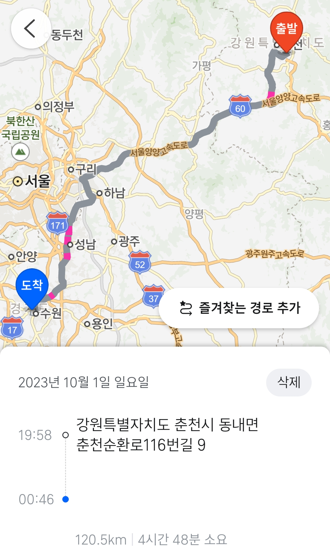돌아오는 길이 문제였다. 추석이 이미 끝나서 방심했는데, 오늘이 연휴 마지막 날이었다. 강원도에서 연휴를 즐기고 돌아가는 차들이 많았던지 돌아가는 길의 서울양양고속도로가 생각보다 엄청 막혔다.