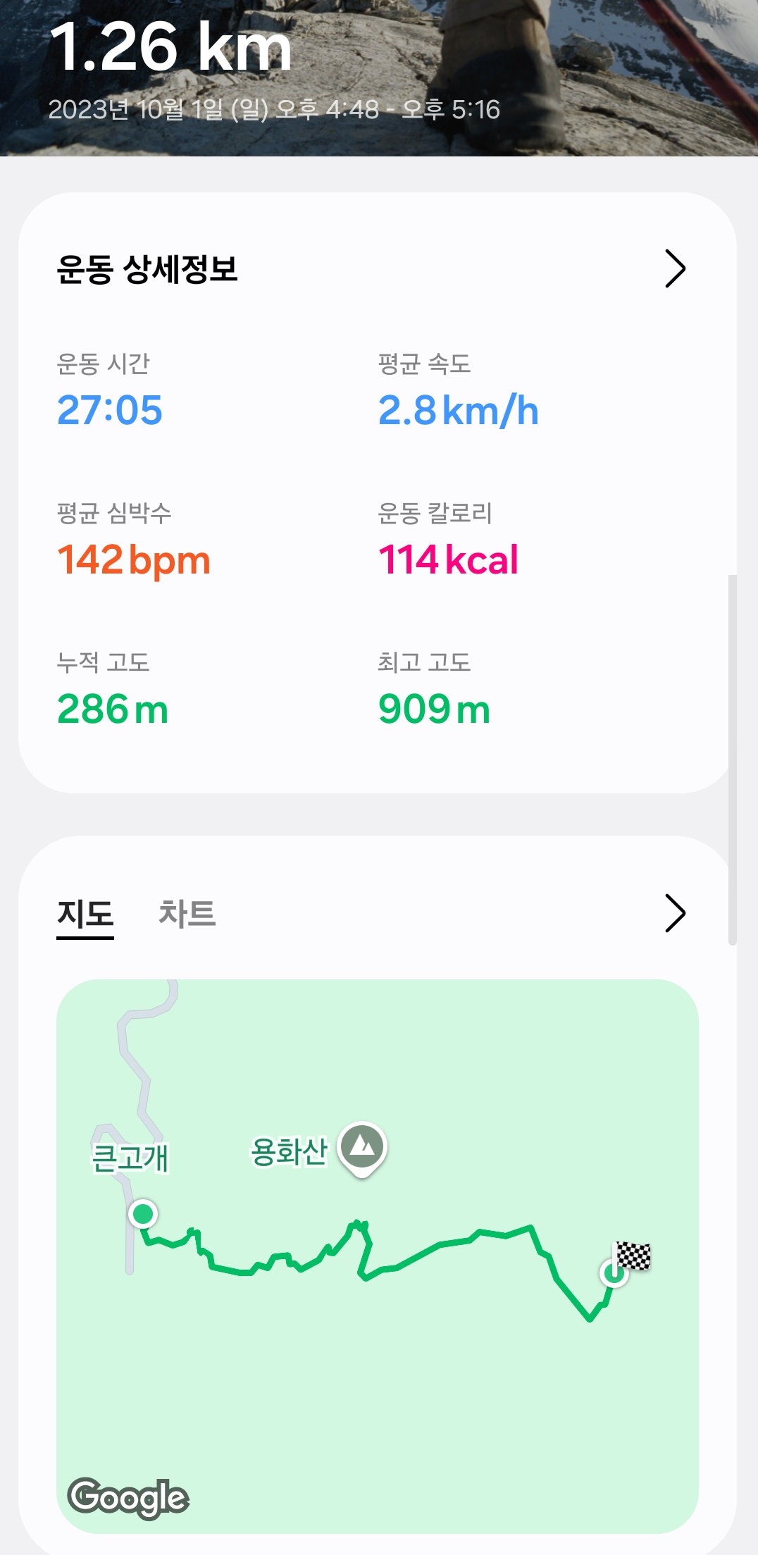 체감보다는 시간이 적게 걸렸다. 그래도 180m의 산을 45분동안 오른거면 상당히 고난이도의 산이긴 하다.