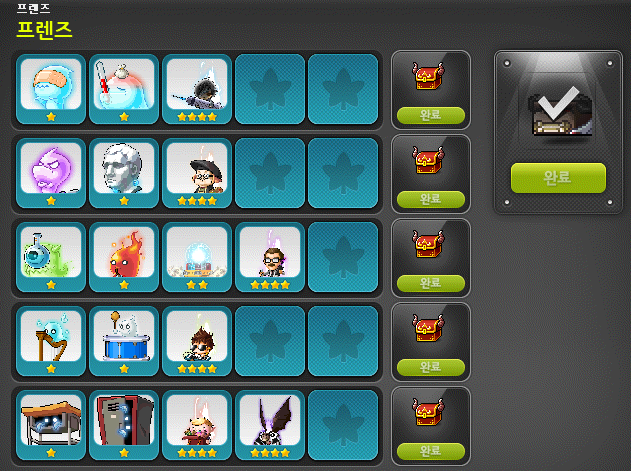 프렌즈스토리 짤짤이 7마리. 어려운 건 없어서 프렌즈스토리 10번 깨기 업적 깨면서 하면 될 것 같다.
